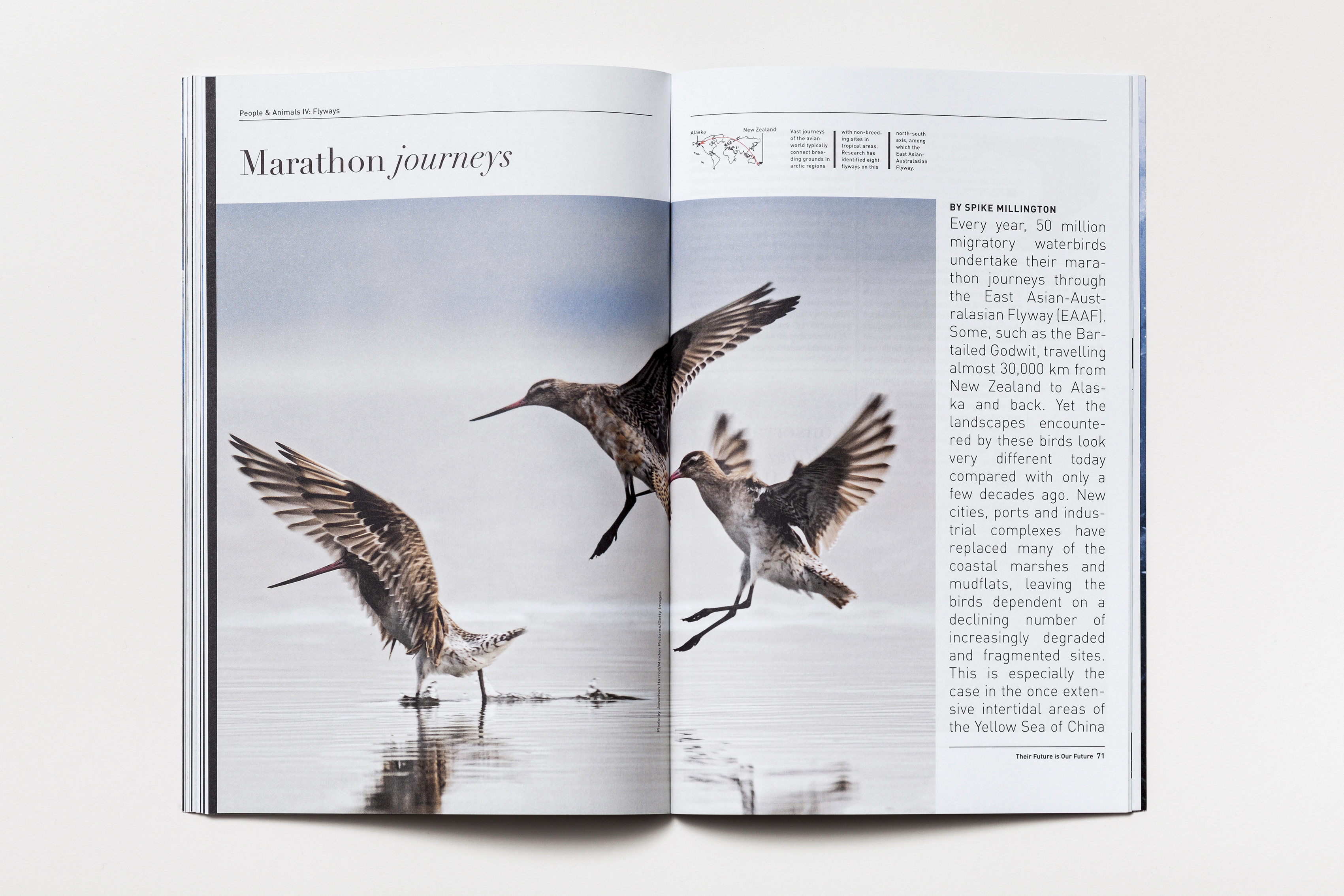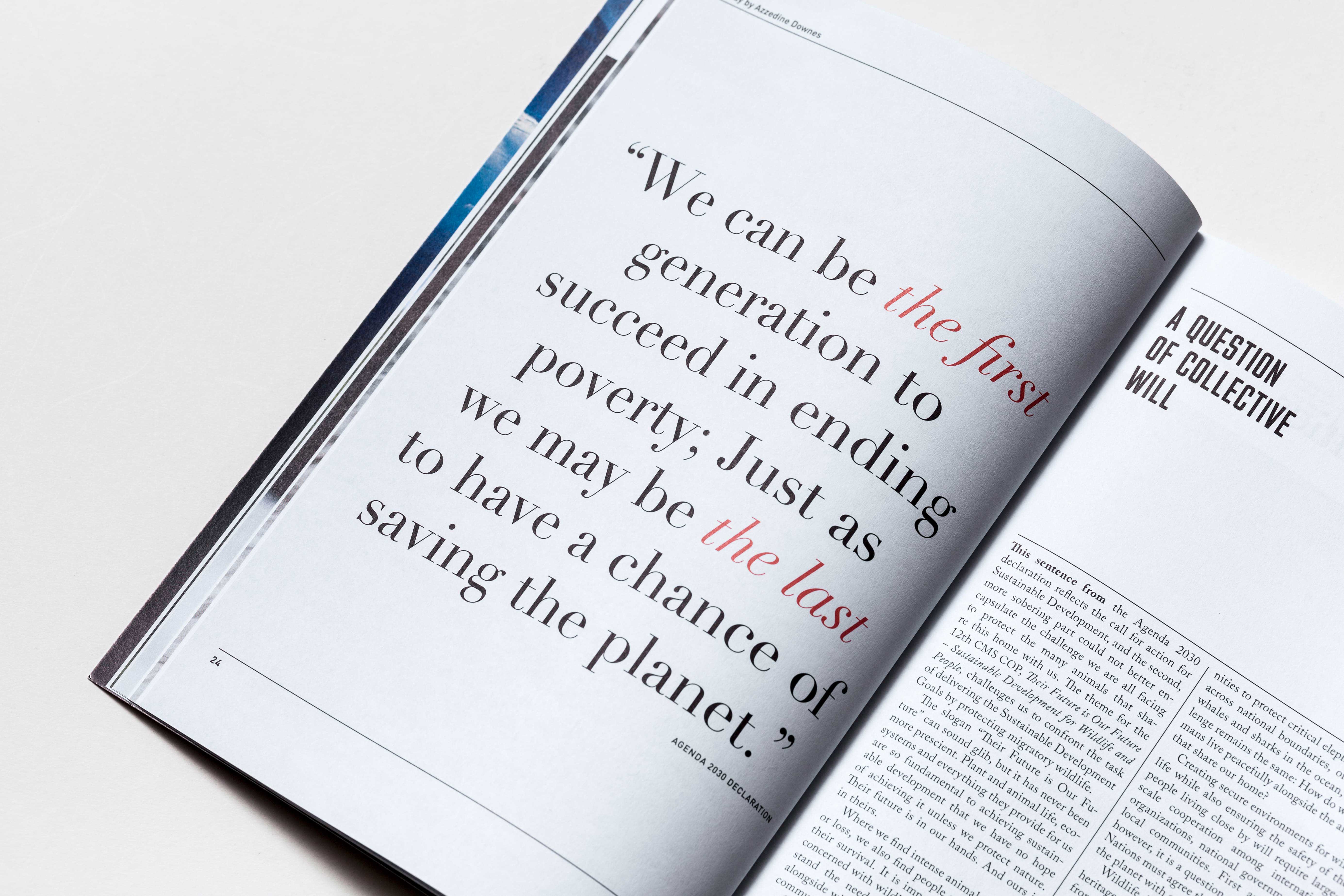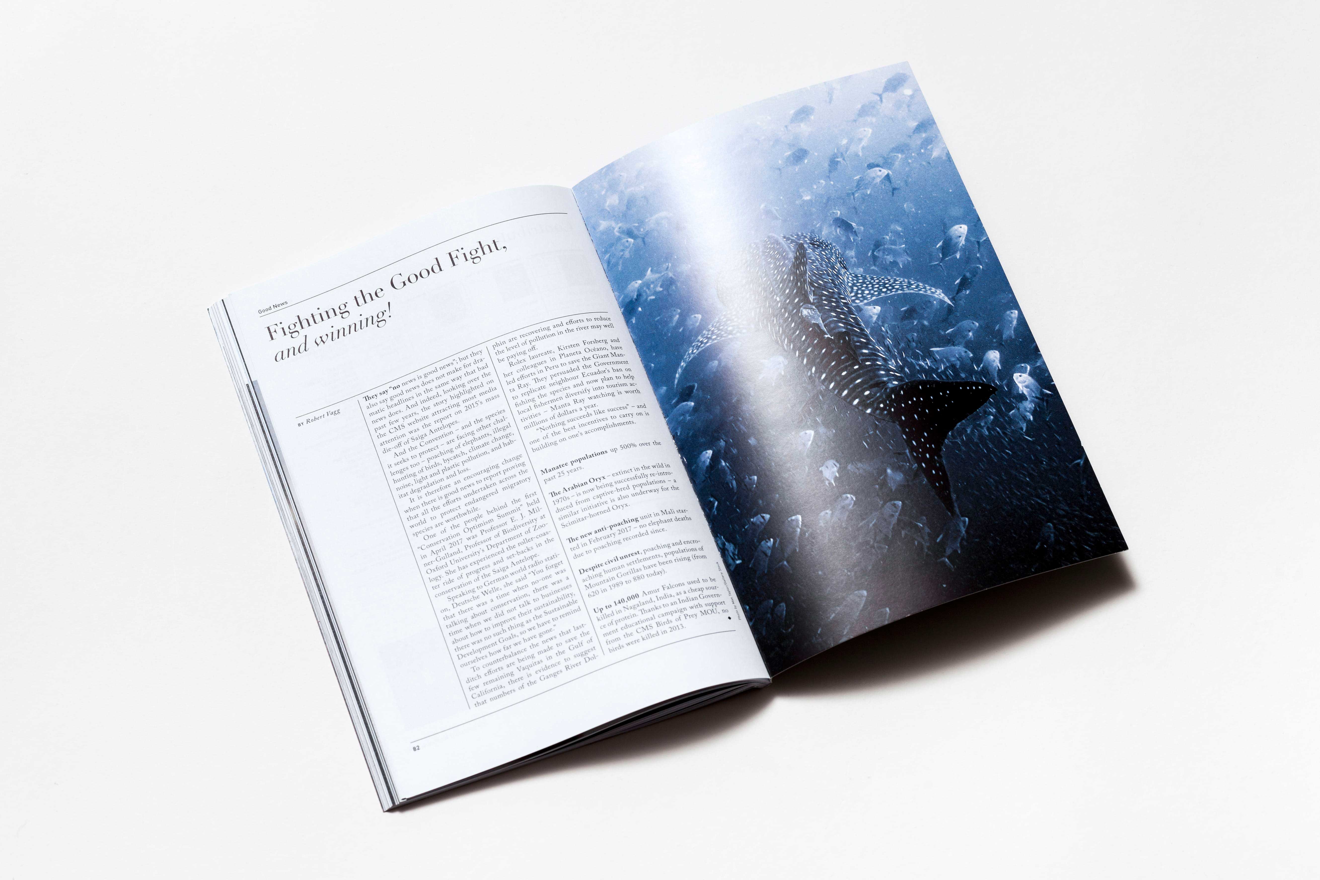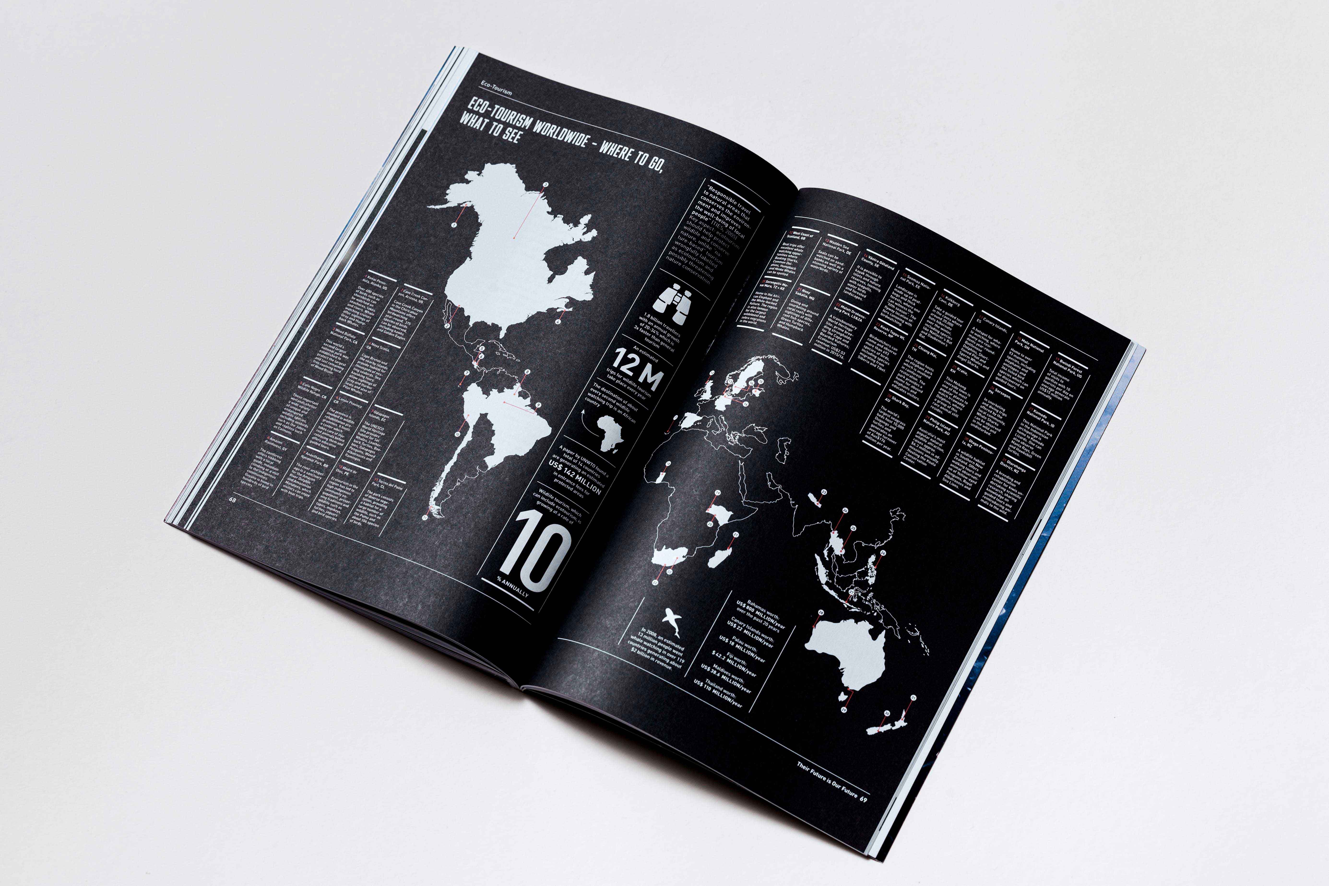 The UNEP Convention on Migratory Species (CMS) is a UN-based, global organization for the conservation and management of migratory species. For the twelfth Conference of the Parties (COP12) in 2017 in Manila/Philippines, I designed and created the magazine TRACKS from scratch, in close collaboration with a small team at CMS in Bonn/Germany. Instead of handing out bland conference papers, the idea was to present the content in a publication that resembles an inflight magazine – because migratory animals are the “frequent travelers“ of the animal kingdom. The concept included double spreads of the “fleet“ and a “route map“ similar to those found in any given inflight magazine.
