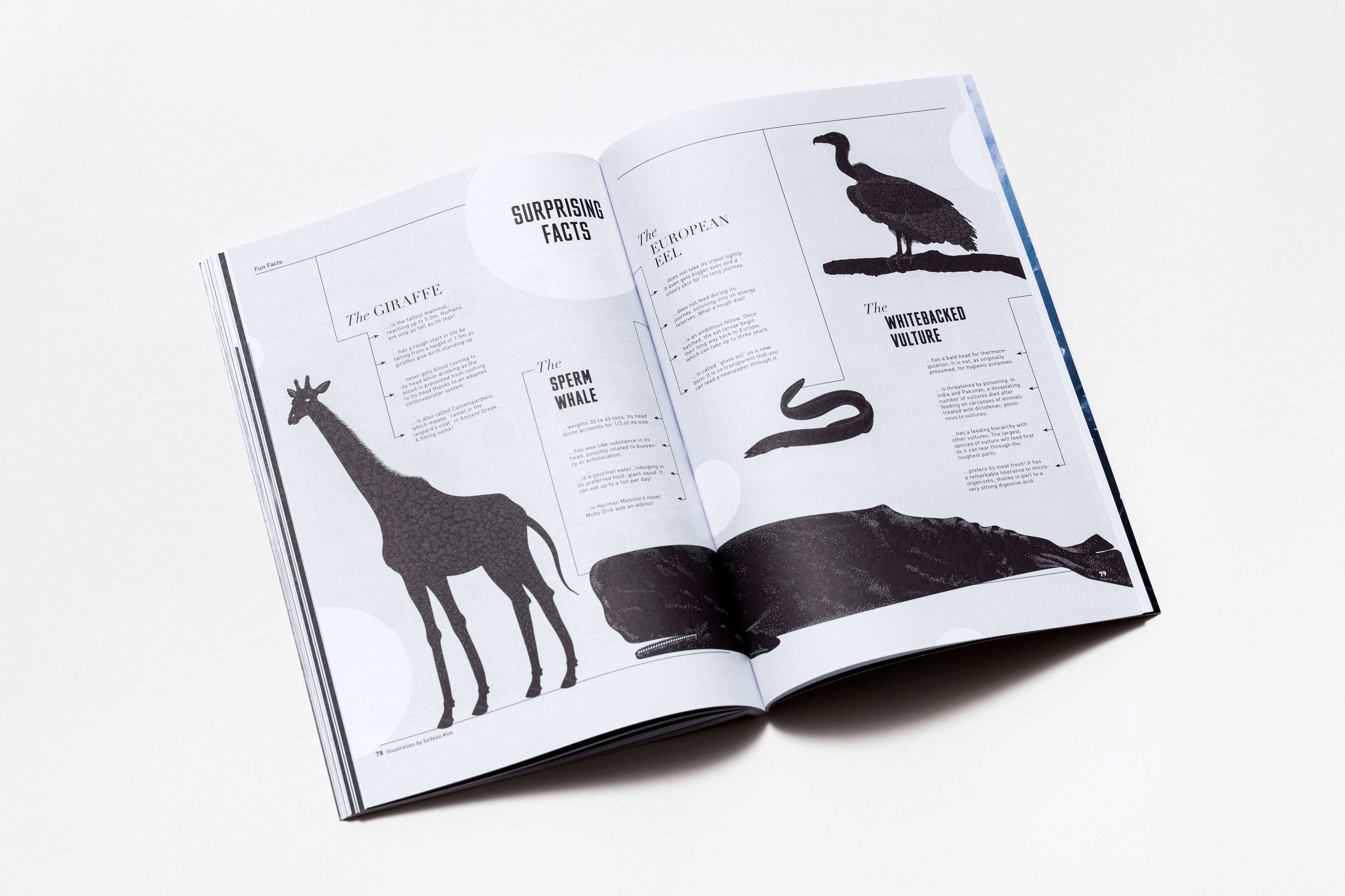 Since this was a pro-bono project, we were given very low budget to complete this project. And we were set on delivering a high-end result despite our financial limitations. Fortunately, we were able to win-over many renowned experts, writers, illustrators and designers to help us at no charge: for example Matt Willey, partner at Pentagram in New York City, graciously let us use two of his personally crafted fonts and the California Academy of Science, publisher of the online magazine biographic, helped us track down some spectacular wildlife photography.